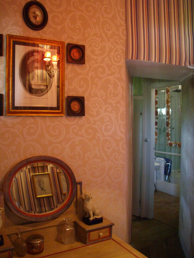 Vous pénétrerez dans cette grande chambre par une petite entrée privative, vous pourrez y goûter le confort d'un lit blotti dans son alcôve ou encore de la duchesse brisée qui n'attend que vos rêveries sous le regard d'une petite marquise... Tout le charme du XVIII ième siècle habite cet endroit.