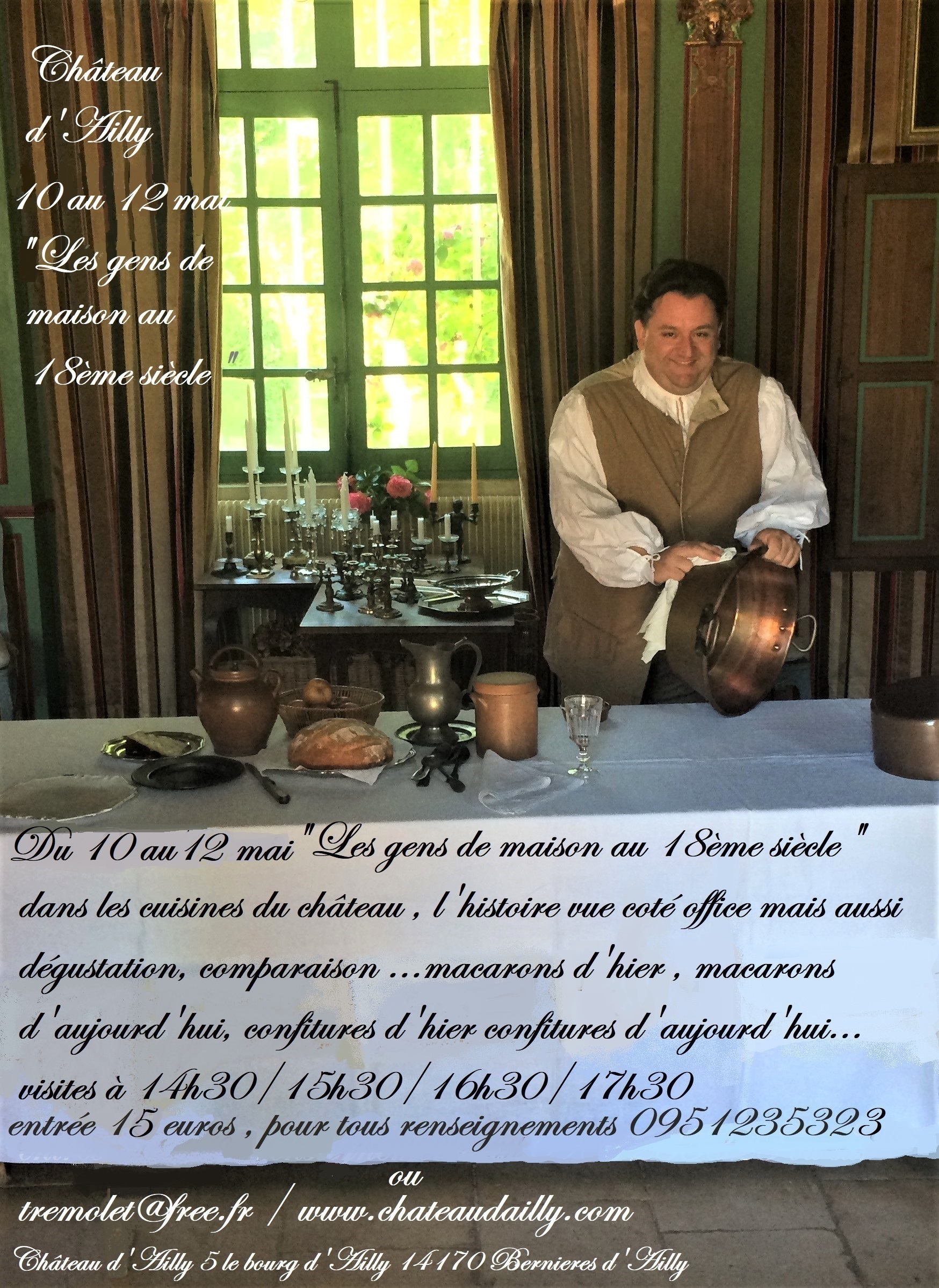 La vie des gens de maison au XVIII Siècle, raconté en costume dans les offices et salons du château par Perrette et Périgord.