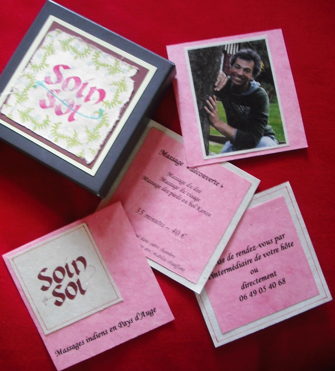 Il vous propose, dans votre chambre au Château, des massages découvertes (dos ou visage ou pieds au bol Kanzu) pour un prix de 40 euros les 35 minutes, sur une table de massage avec matelas chauffant, ou encore un massage du corps à l'huile de sésame biologique pour un prix de 65 euros les 60 minutes ou 80 euros les 75 minutes.