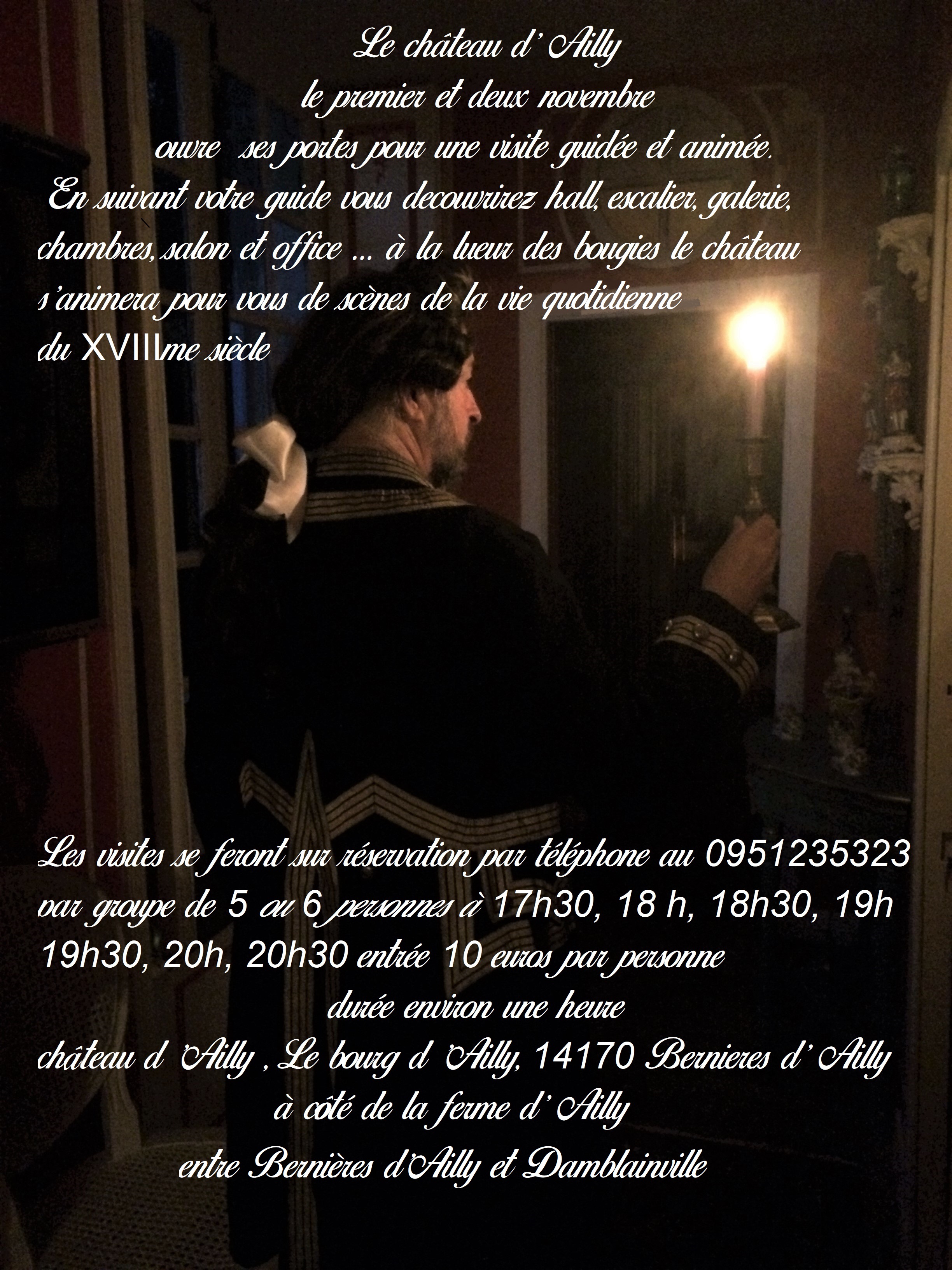 1 et 2 Novembre Le soir venu, le château ouvre ses portes pour une visite aux chandelles. Visites guidées et animées. En suivant votre guide vous découvrirez l'intérieur du château où s'animeront pour vous des scènes de la vie quotidienne du XVIII Siècle.