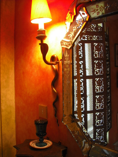 In this vast bedroom, the shadow of Mosca (a character from a Ben jonson' s 1606 comedy Volpone) looms over this very Marco Polo decor. The renaissance takes its place here with touches of Syrian furniture. You can sleep under a bed canopy strewn with stars, read on a panther upholstered "chauffeuse" or enjoy the view over the parc and the chinese pavilion.